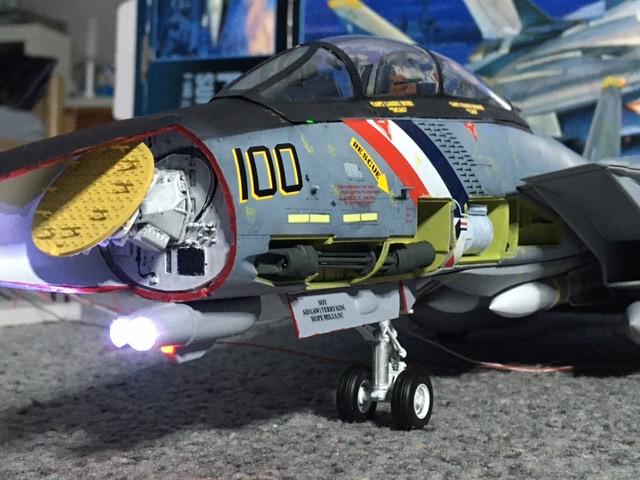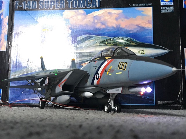 Ich hab in den letzten 2 Monaten eine F14 gebaut. Ich hab sie mit Licht ausgestattet. (SMD 0805 LED) In der Zwischenzeit bin ich auch von Revell Aqua auf Vallejo Air umgestiegen. Läuft damit deutlich besser. Grundierung müsste ich aber mal kaufen. Auf YouTube sieht man die Lampen auch blinken und die Bilder in höherer Auflösung: https://youtu.be/PIV8goueZ-0