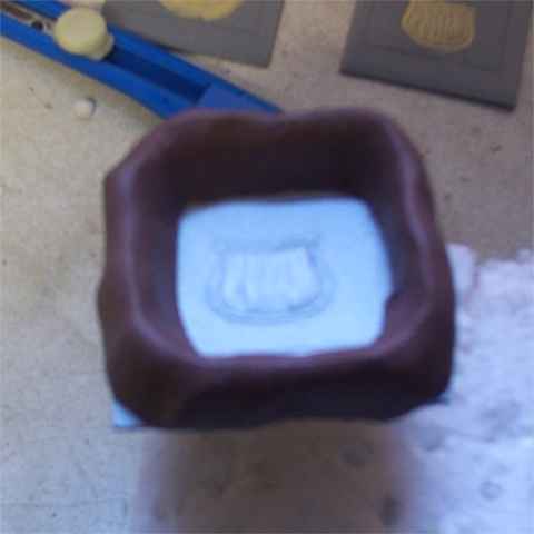 Also habe ich die Tasche abgeformt. Dazu habe ich aus Knete einen Wall geformt