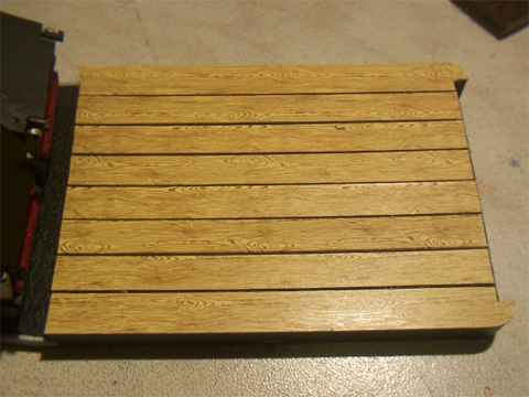 Für den Holzboden der Ladefläche habe ich im Modellbahnzubehör Papier in Holzoptik gefunden, welches mir sehr zusagte.