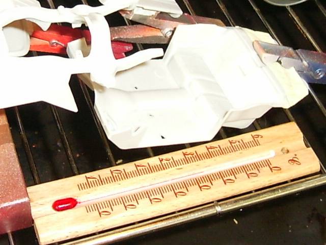 Als nächstes kommen dann die vorbereiteten Teile des Modells auch mit in den Backofen, damit alles auf die gleiche Temperatur kommt.