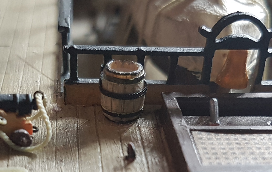 Für diese werde ich dann ein Loch in die Netze schneiden, aber davon erzähle ich dann beim nächsten Mal...Challenge accepted!vielleicht kannst Du bei den Fässern durch Einritzen in Längsrichtung der Oberfläche noch etwas Brettstruktur verleihen.
