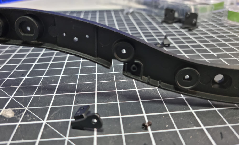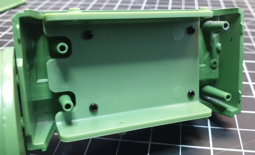Beim Zusammenbau der Vorderfront ist mir auf den Fotos ein leichter Farbunterschied aufgefallen. Das Gitter und die Seitenteile sind etwas dunkler als der Frontrahmen.