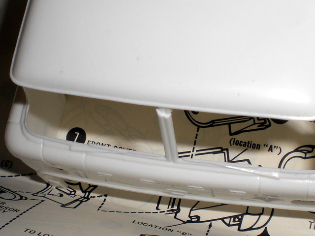 Andererseits kann man aber auch sagen: "So ein schöner Bausatz und dann klebt der den blind zusammen." Ein Argument dafür ist auch, dass AMT das wohl schon eingeplant hat, dass der eine oder andere die Türen wohl beweglich gestalten würde, denn es ist tatsächlich ein Kasten für die Treppe vorhanden, die aber völlig zwischen Karosserie und Wanne verschwindet, also offensichtlich absichtlich für diesen Fall gestaltet wurde.