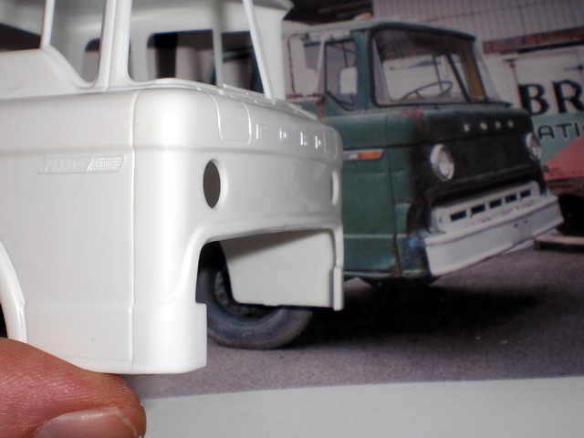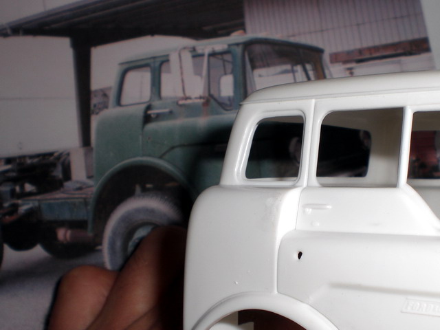 Da die Kabine nach vorne klappbar ist, habe ich mich jetzt schon fast damit abgefunden, dafür die Türen so zu lassen und die Sicken einfach deutlich abzudunkeln. Ich habe Angst, mir den Bausatz zu versauen und über Ersatzteile brauche ich wohl kaum nachdenken.