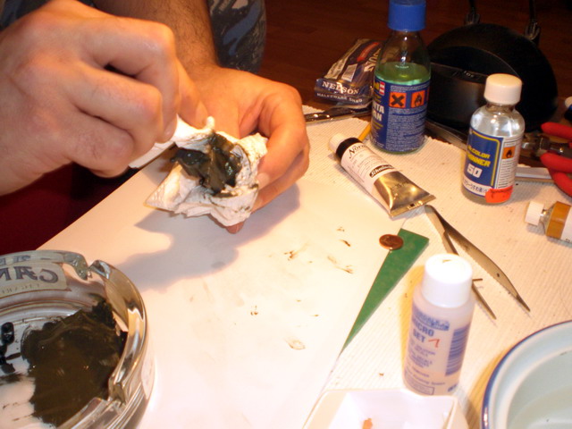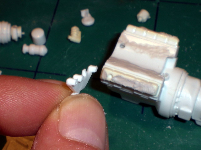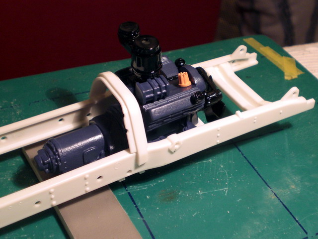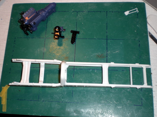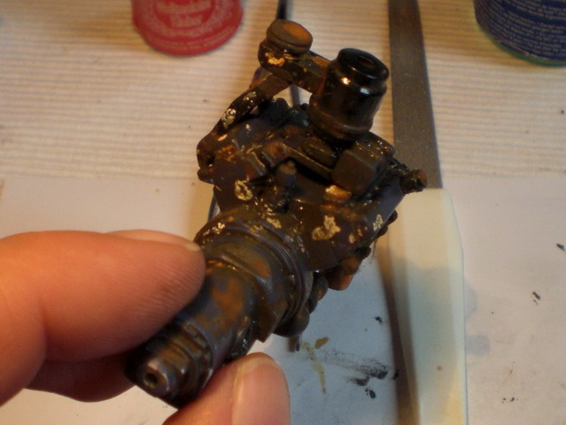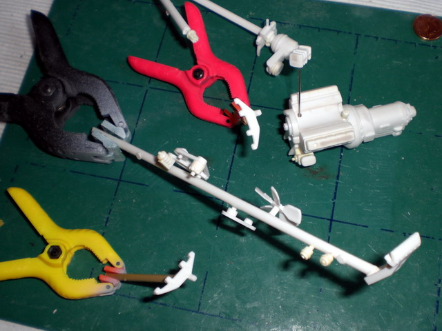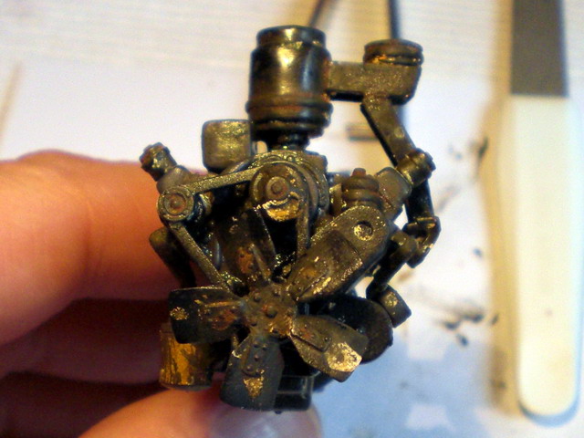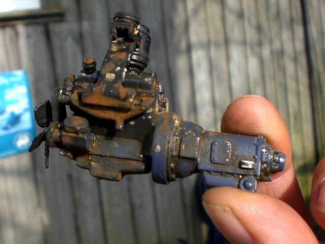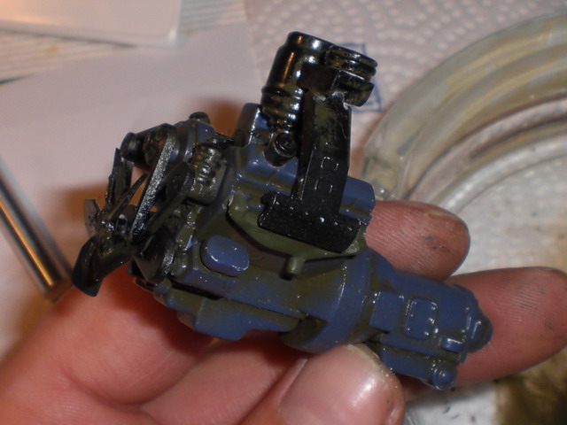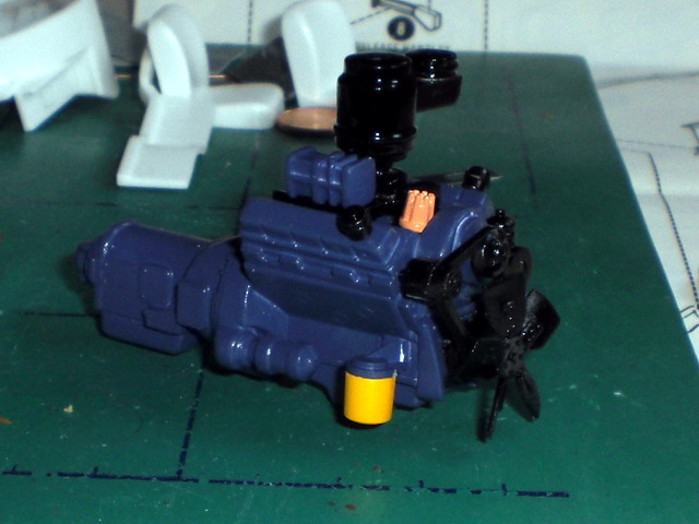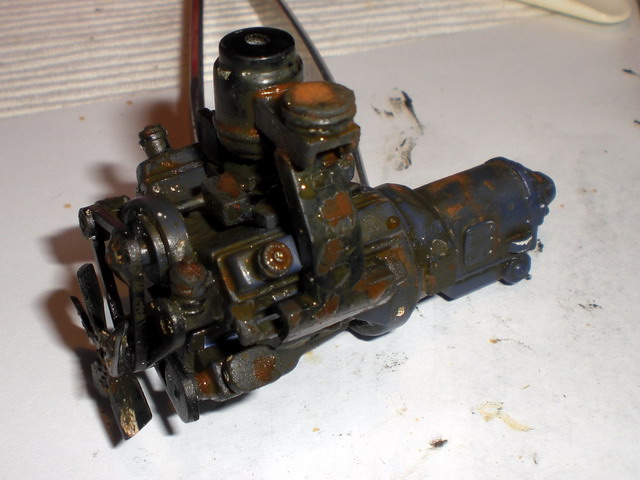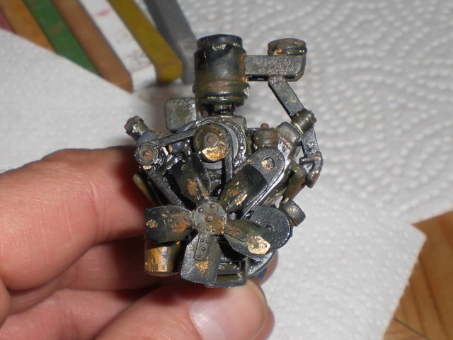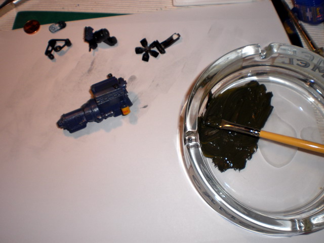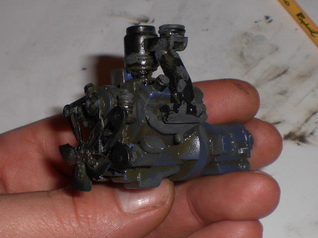 Der Motor ist soweit fertig. Der Motor selbst wird blau, einige Teile schwarz. Ich habe die schwarzen Teile weitestgehend zu Baugruppen zusammen setzen können, kann aber jetzt nicht mehr den Kompressor anwerfen.