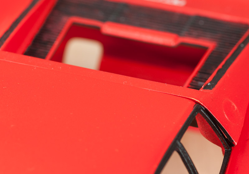 Den Übeltäter habe ich inzwischen auch lokalisiert: es ist der rechte Auspuff, der irgendwie (im Inneren) zu weit nach hinten ragt und so den korrekten Zusammenbau verhindert. Ich habe ihn auch schon abgenommen und wieder neu eingebaut, aber immer noch mit demselben Resultat. Da ich irgendwann keine Lust mehr hatte und auch nicht riskieren wollte, dass der Testarossa nach all der investierten Zeit noch Totalschaden erleidet, ist der weitere Zusammenbau vorerst mal auf Eis gelegt. Ob und wann ich diesen Ferrari fertig stelle, weiss ich noch nicht.