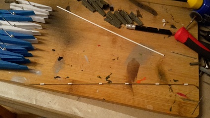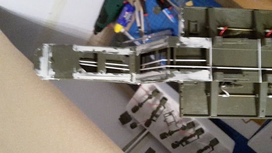 Danach kam ein Wash aus stark verdünnter schwarzer Acrylfarbe aufs Modell. Auch dieses habe ich zum ersten Mal gemacht. Ihr seht es sind so einige