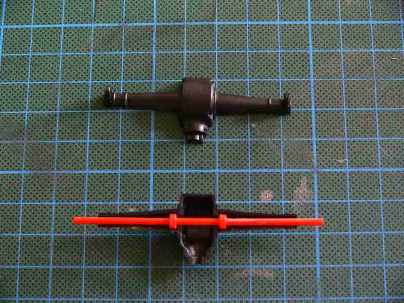 So zum Schluss für heute kam dann noch der Zusammenbau der Hinterachse, die mich etwas überrascht hat..., nicht nur das zwei Achshälften mit einander verklebt werden sollen, das ist ja normal, nein, es kommt auch noch so etwas wie eine Innenachse hinzu, die laut BP beweglich bleiben soll. Wer also auf bewegliche Räder, wert legt, muss auch hier sorgsam und sparsam mit dem Kleber umgehen.
