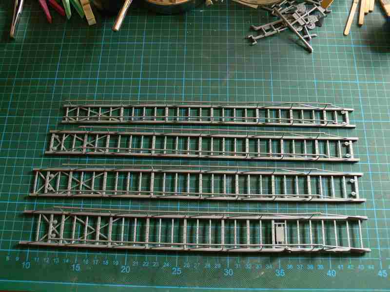 Nun habe ich die beiden Sitzbänke vom Spritzling gelöst und versäubert, hier wird dann aber zuerst die Leiterhalterung von hinten an die vordere Sitzbank geklebt, danach werden dann Sitzbänke zusammen geklebt.