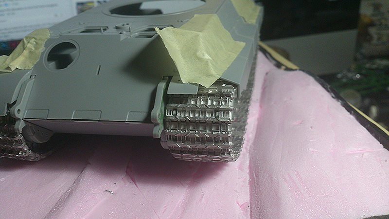 Ich weiß nicht, wie wichtig dir historische Genauigkeit ist. Aber wenn du ein tatsächliches Fahrzeug mit Octopus-Tarnung nachbilden willst, kommt das mit diesem Bausatz nicht hin, bzw. müßte modifiziert werden. Jene bei Kassel waren späte aus der Märzproduktion (U-Abdeckung über Zielfernrohr, geänderte Frontschürzenabdeckung, geänderte Heckluke, 18-Zahn-Triebräder, Single-Track-Kette, etc.). Da sie frisch aus der Fabrik kamen, hatten die Octopus-Tiger zudem Transportketten ausgezogen.