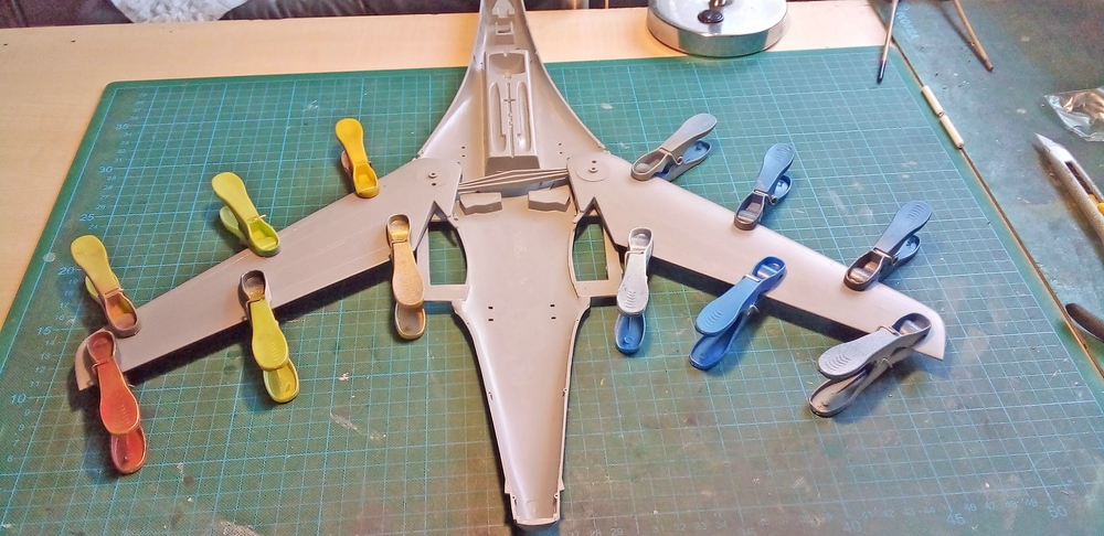 Dann kommt die obere Tragflächenhälfte drauf und alles wurde geklammert.