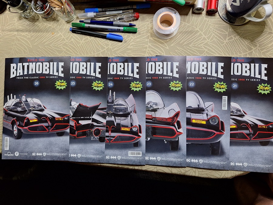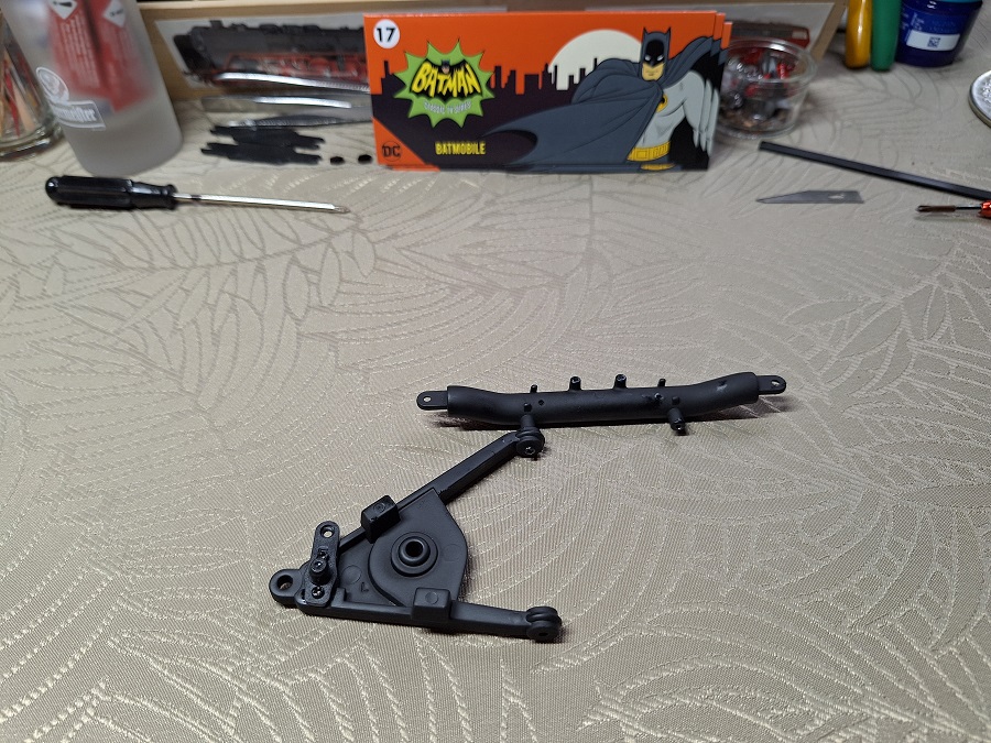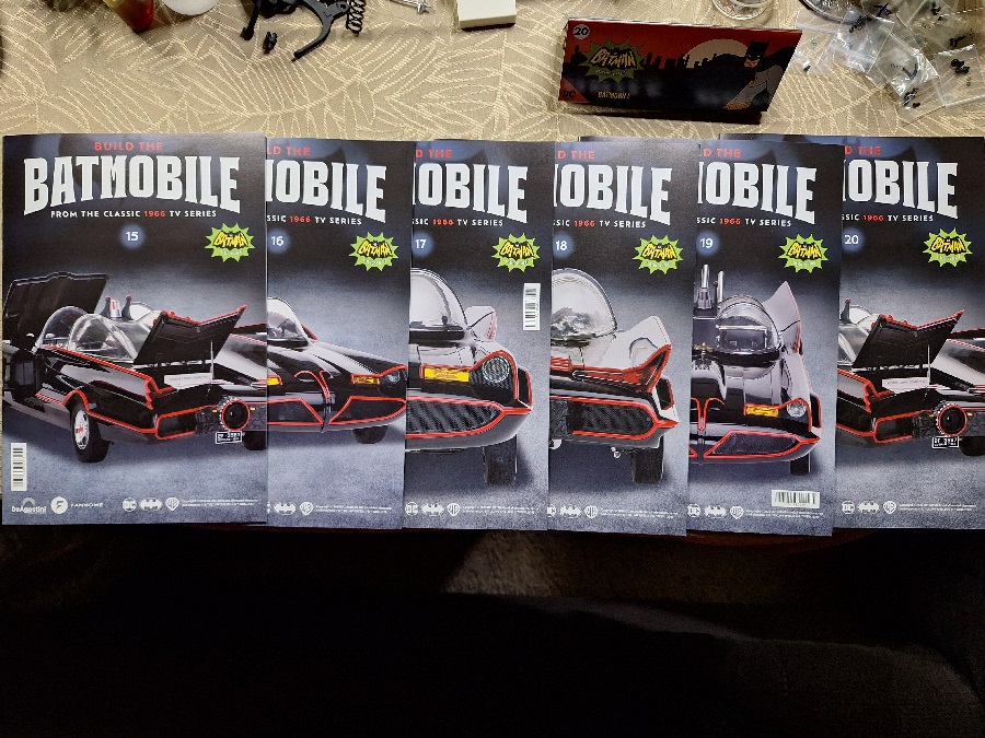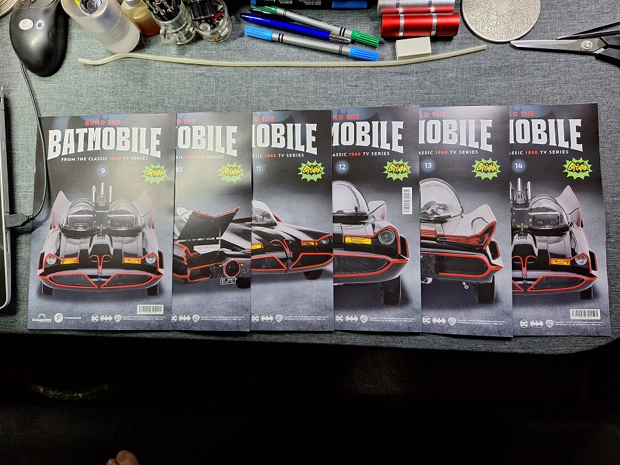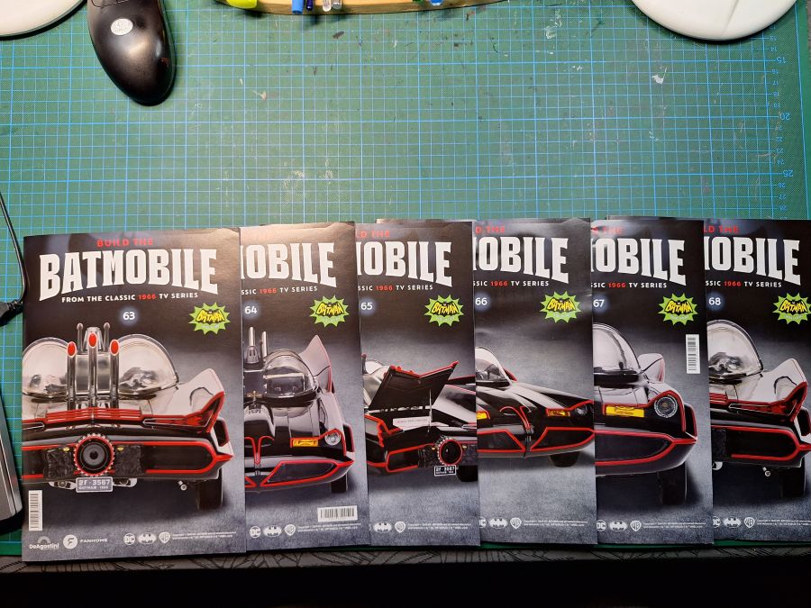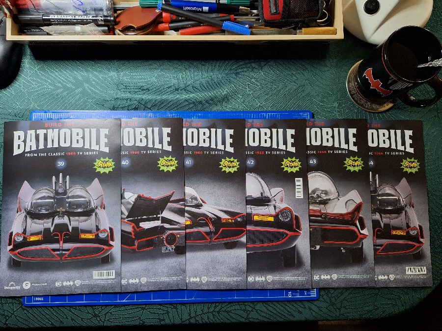 Heute früh ist endlich die 2. Lieferung des Batmobils angekommen. Es sind die Nummern 3 bis 5. Viel Zeug, an dem man wenig zu schrauben hat. Anstatt mit dem Boden,