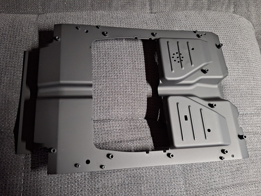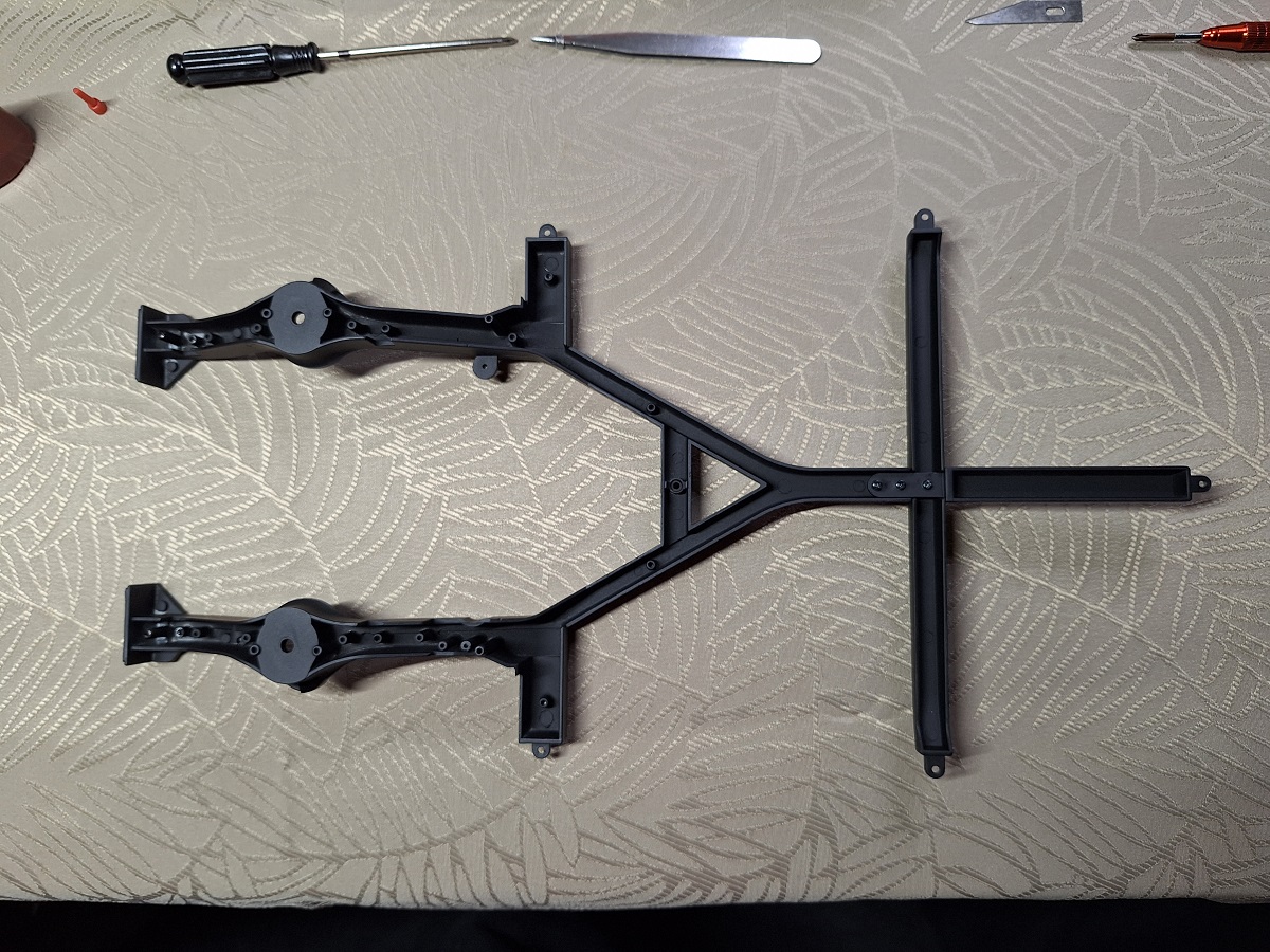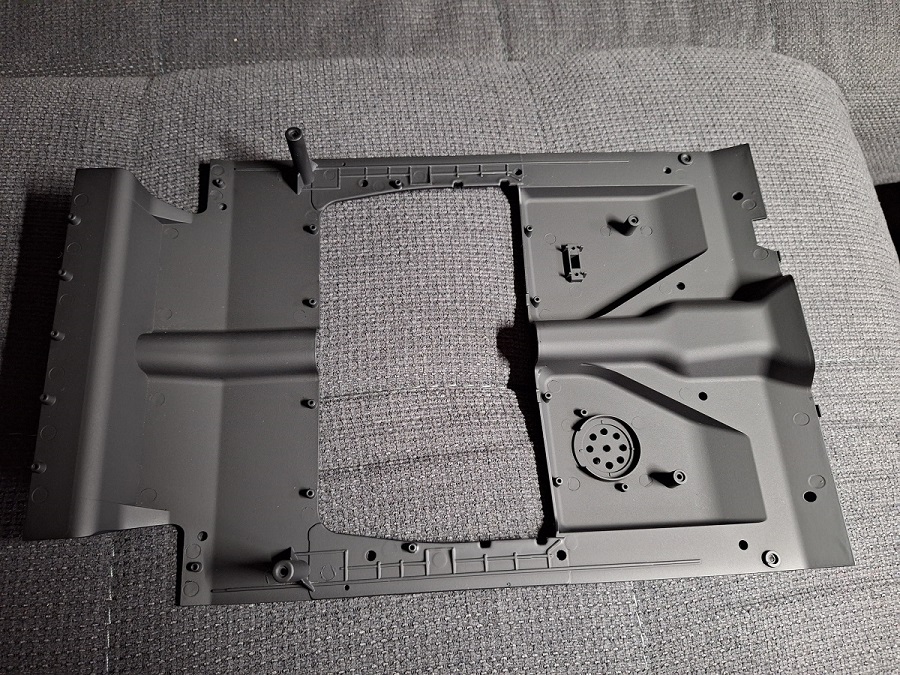 Drin war ein großes Metallteil. Es war die Mitte bis hintere Bodengruppe. Zusätzlich kam ein Plastikteil, das in die Bodengruppe eingesetzt wurde. Zusätzlich einige