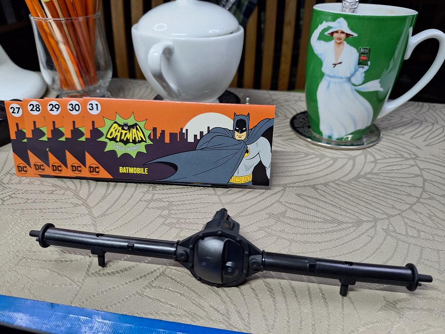Heute Vormittag ist die aktuelle 11. Lieferung des alten Batmobils eingetroffen. Es sind die Ausgeben 51 bis 56. Ein großes und schweres Metallteil, das im Heck eingebaut wird,