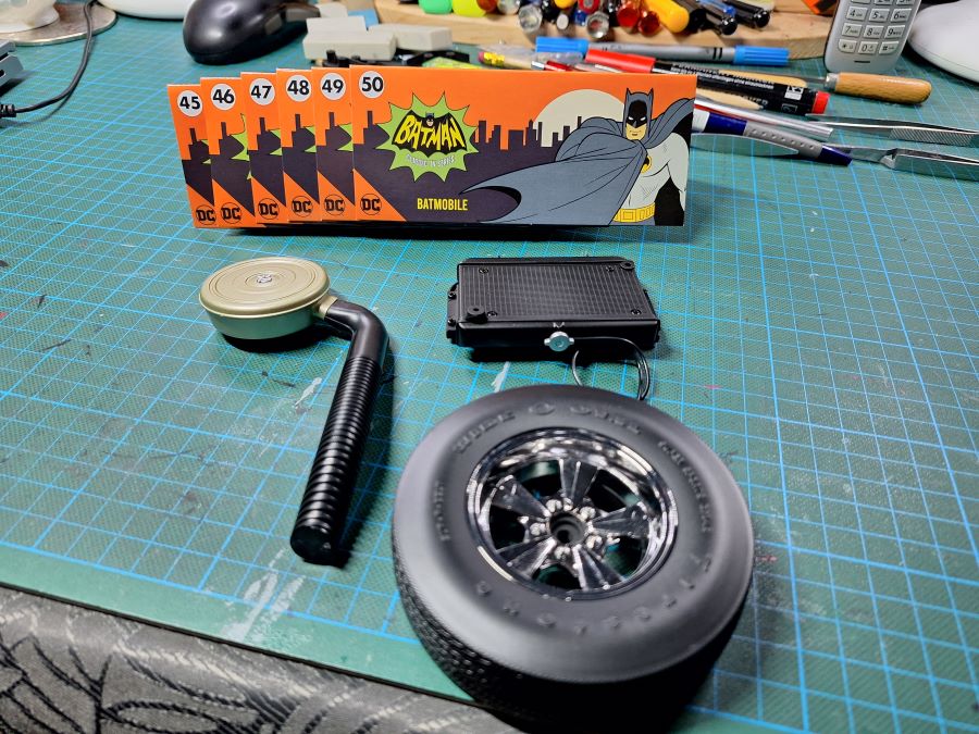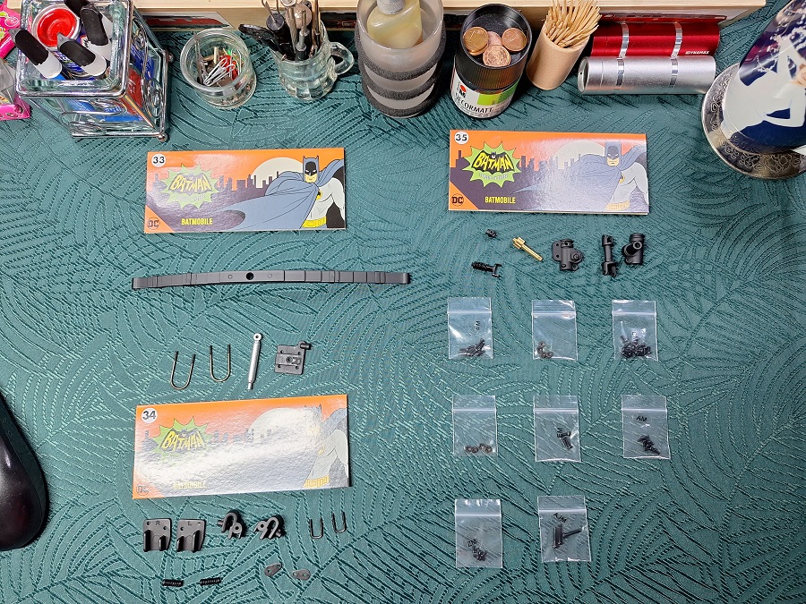 Heute kam die vierte Lieferung mit den Nummern 9 bis 14 des Batmobils ins Haus. Jede Menge Kleinkram, die alle zum Motor gehören.