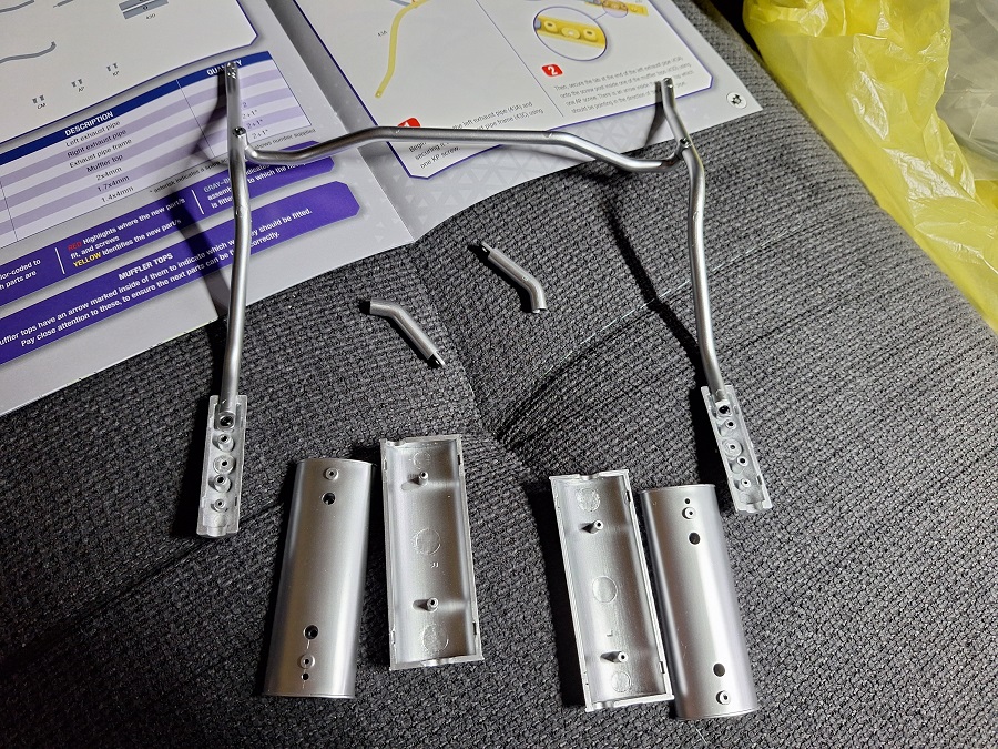 Die beiden Auspufftöpfe haben mich beinahe um den Verstand gebracht. Die werden einfach nur drauf gesteckt und mit zwei Schrauben befestigt werden. Einfacher gesagt als getan.
