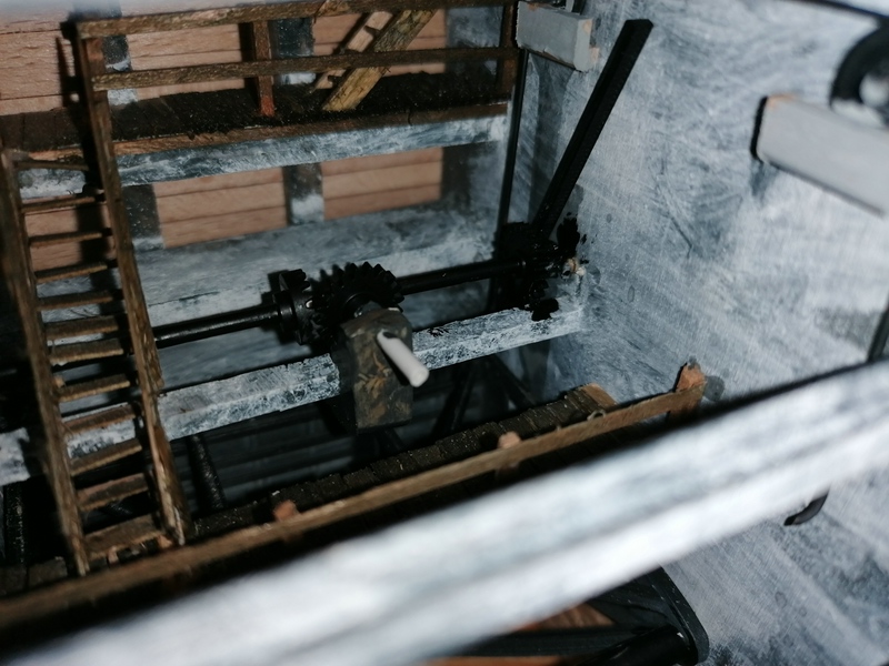 An den Zahnrädern auf beiden Seiten hing das Tor mit Zahnstangen, womit es betätigt wurde. Diese Zahnstangen habe ich mit Kabelbindern dargestellt. :idee: