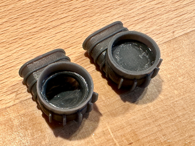 Mit der Airbrush bin ich zum Glück nicht auf Kriegsfuß. Sonst würden all die ganzen feinen Details im Lack verschwinden. Früher habe ich auch mit Dosen lackiert. Das ging zwar schnell, war aber viel zu viel Auftrag bei den kleinen Modellen.