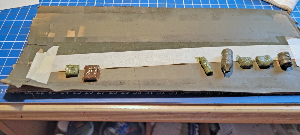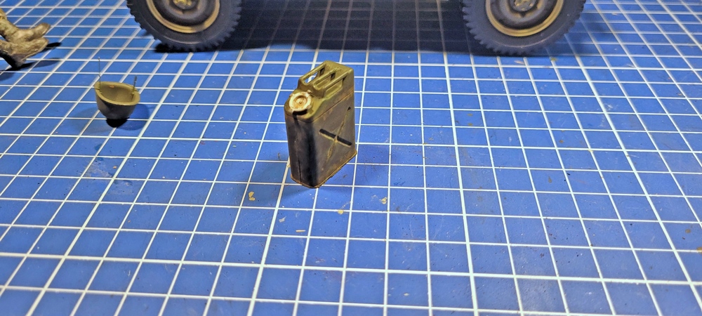 Als nächste habe ich den zweiten Kanister, vom Bausatz, bemalt, aber nicht in Oliv sondern in US Dunkelgrün, das soll mal ein Wasserkanister werden, macht auch im Innenraum mehr Sinn, als Sprit und wird auch noch ein zweites mal lackiert.