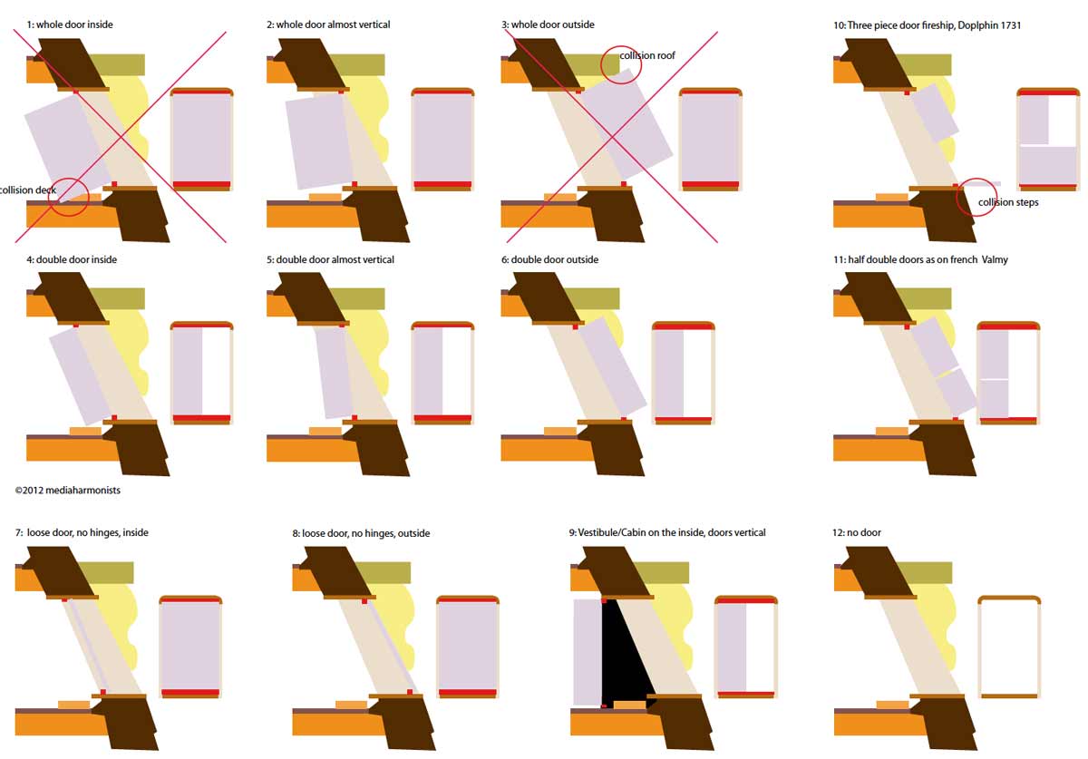 auf einem Feuerschiff ist das ja recht egal, aber bedenkt das diese Pforten, ähnlich wie der Treppenaufgang in einem Schloss, ja repräsentativ sein sollten. der Nutzen wäre ja fort, wenn dort eine Tür vor läge.