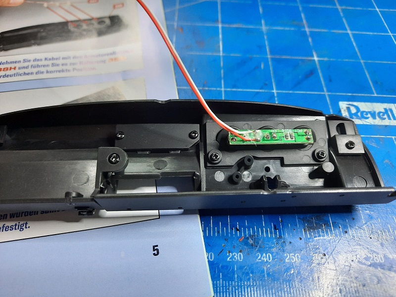 Für die Gestaltung des Instrumentenbrett habe ich bedrucktes Wassertransferpapier (Schiebefolie) gewählt. Selbstklebende Holzdekorfolie ist zu dick.