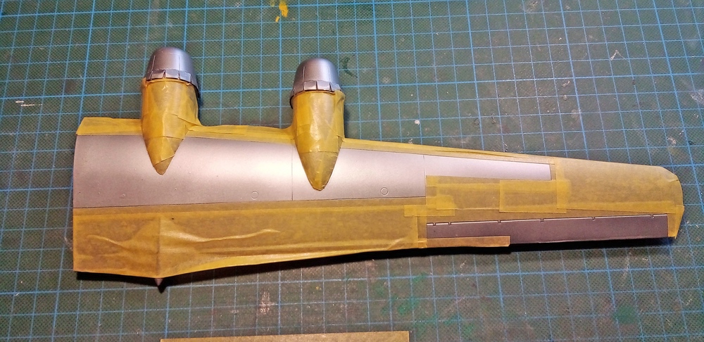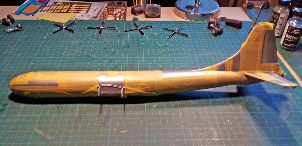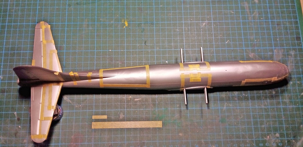 d.h. ich habe angefangen den Bomber, für die zweite Alufarbe, ab zu kleben.