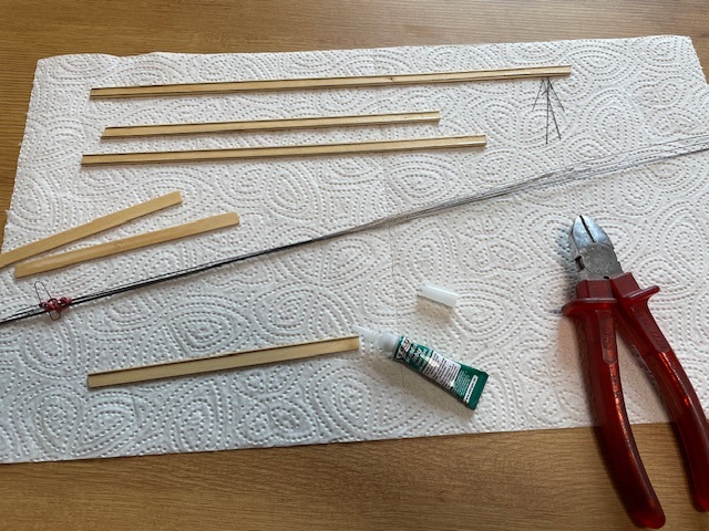 Bevor der Sekundenkleber ausgehärtet war, wurden die Nadeln mittels leichten Hammerschlägen