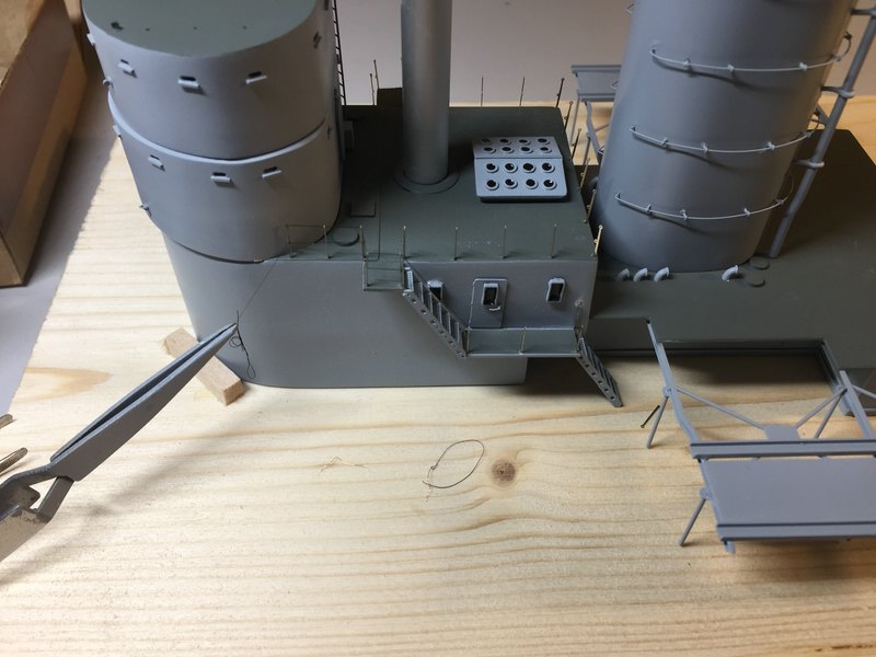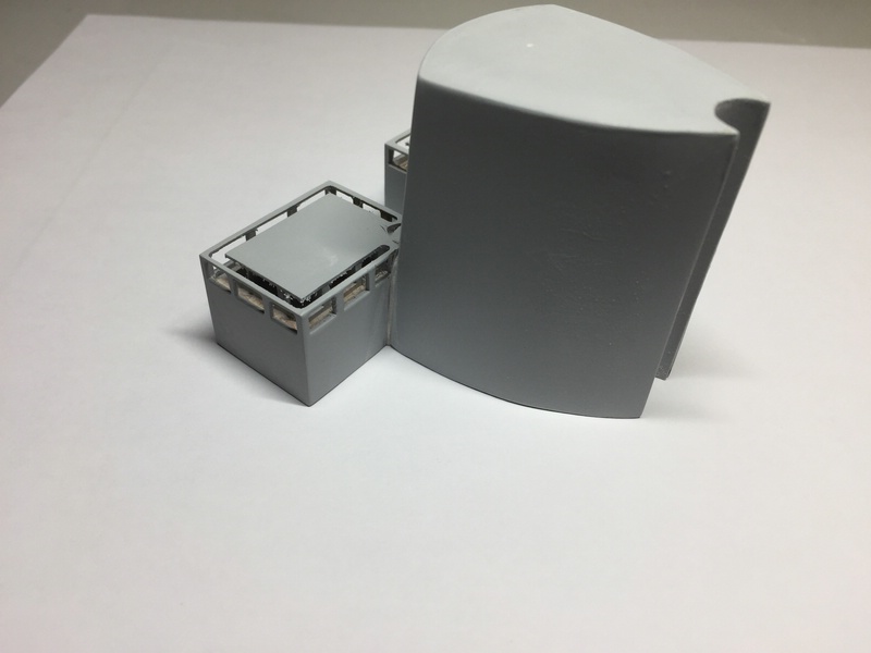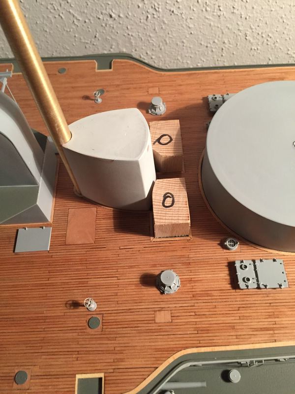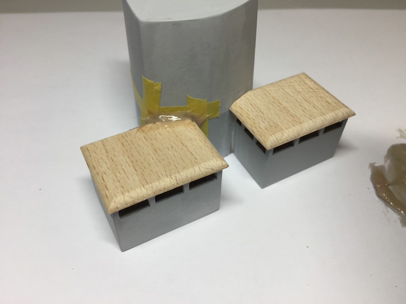 Zuerst einmal Bauklötze sägen, die an den Leitstand angebaut sind und diese an die schrägen Wände anpassen.