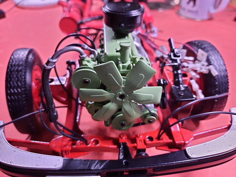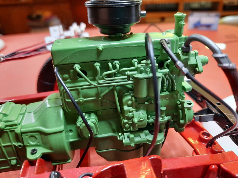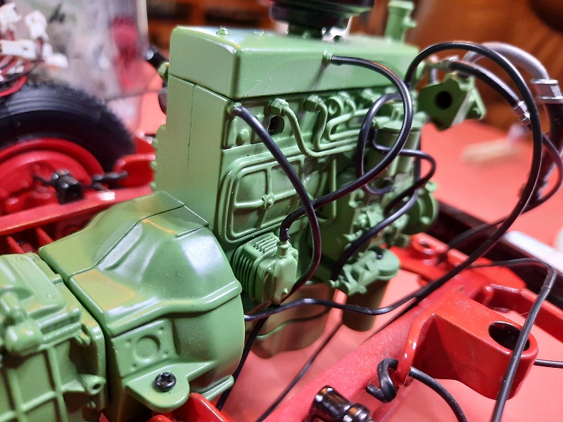 hinteren oberen Eck der rechten Motorhälfte 27A gestülpt" werden - nur war an meiner Motorhälfte kein Zapfen, sondern nur eine kleine Vertiefung... d.h., ich habe mit einem 1 -mm - Bohrer an vorgesehener Stelle ein Sackloch gebohrt, ein Gewinde eingeschnitten, eine Metallschraube eingedreht, den Kopf abgeschnitten und auf diesen Stumpf den Schlauch (Rücklauf zum Dieseltank) aufgesteckt...