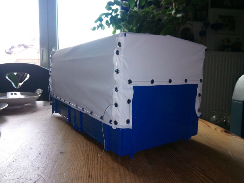 Aber was mich jetzt wirklich an der Plane stört, ist die Tatsache das an der Stirnwand die Überlappung zu den Seitenteilen völlig
