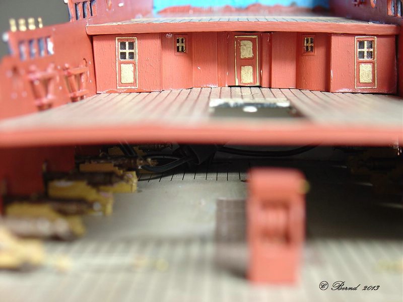 Wie jetzt dieses Problem lösen? Die Decks waren doch schon fest eingebaut, die Lafetten und Geschütze im Heckbereich auch…