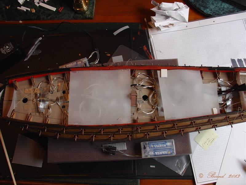 Mhmmmm… warum eigentlich nur Beleuchtung im hinteren Teil des Schiffes ? Bei so vielen Geschützpforten wäre es ja geradezu eine Sünde, die