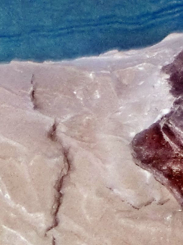 Da die Spachtelmaße ziehmlich dick aufgetragen wurde sind während des trocknens einige, teils tiefe Risse entstanden.
