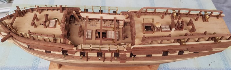 Als nächstes steht noch die 2. Laterne und die Kanonen an. Danach werden die einzelnen Teile am Deck montiert und dort mit der Reling und anderen Elementen weiter gearbeitet.