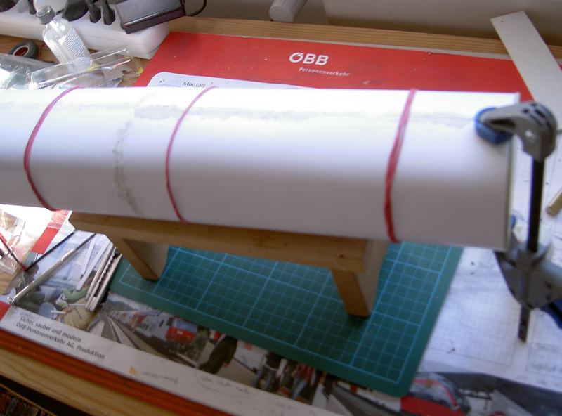 . Ist doch die ein Tankhülle vorne 9mm und hinten 3mm zu kurz!!! Na dann, einen Sheetstreifen ausschneiden und einkleben.