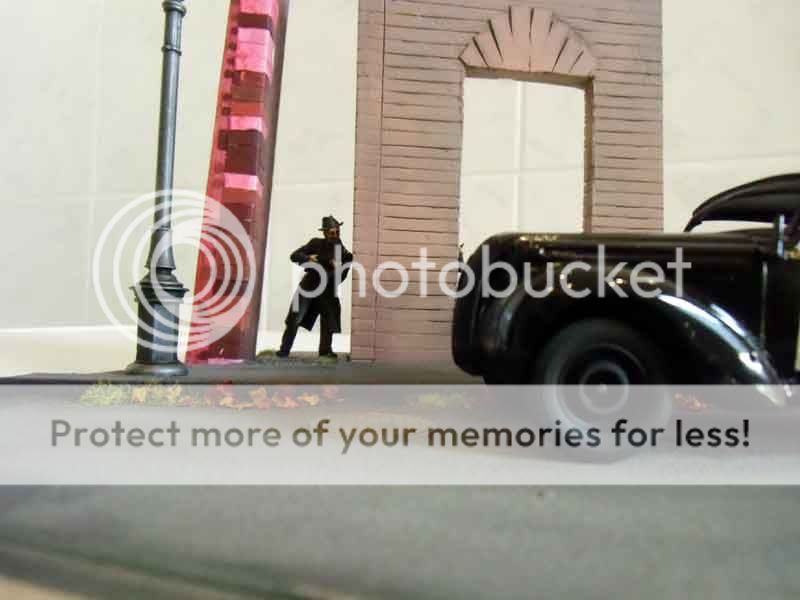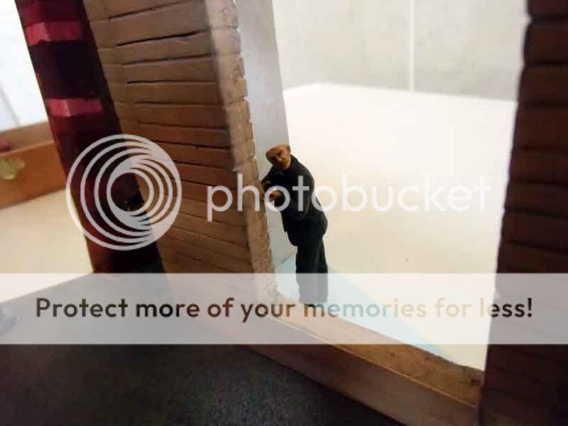 gehts doch mal bissel am Diorama weiter. Und zwar mit dem etwas größeren Haus. Es erhielt einen Anstrich aus Tamiya Buff, dem ich hier und da noch etwas Rot verpasst habe, um den einheitlichen Look etwas zu brechen. Danach kam, wie bei der anderen Häuserwand, graue Pastellpampe drüber, die wieder stellenweise verwischt wurde. Jetzt brauche ich nur noch eine Ide fürs Fenster. Vollglas, teilweise zerschossen natürlich, oder eher nicht?! Sprich Fensterrahmen?! Was meint ihr?