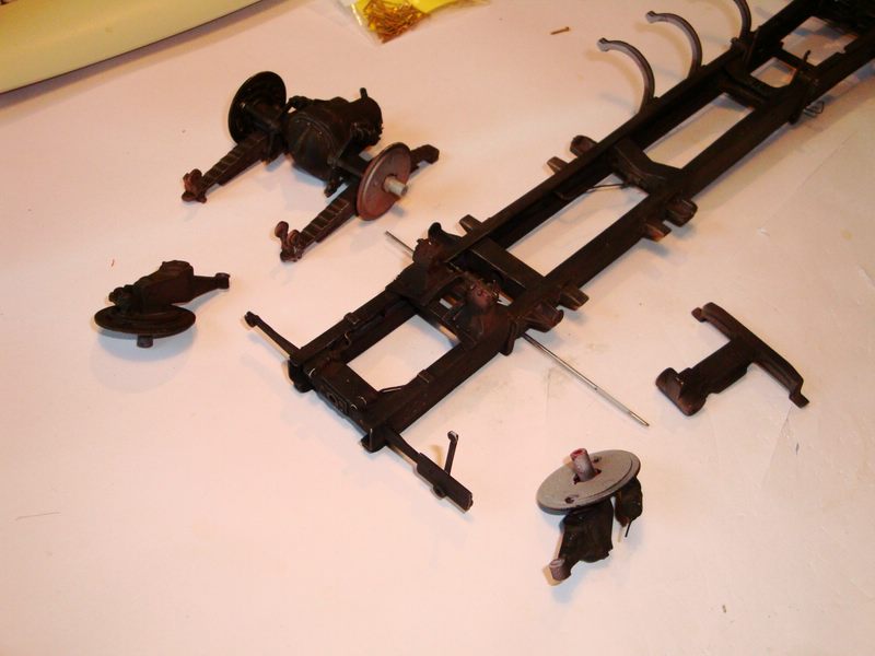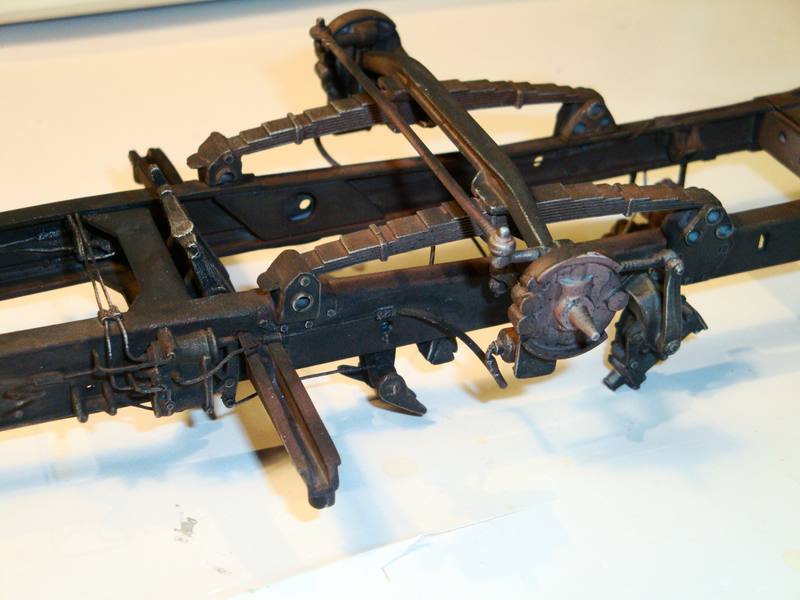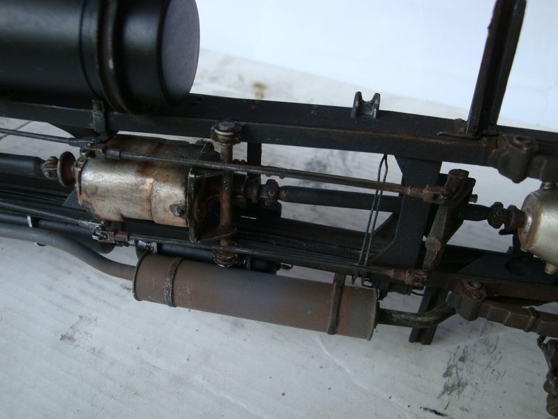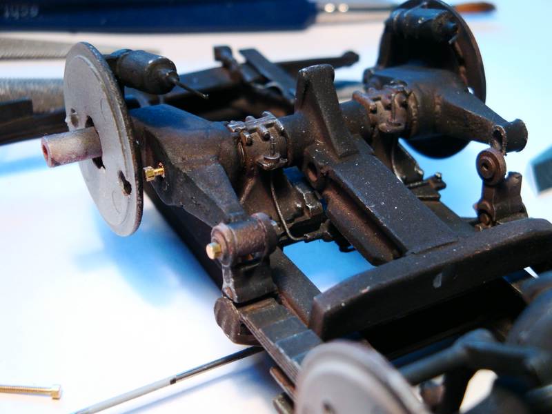 Die Eigenbau Bremsverteiler und Leitungen an der Antriebsachse, sind hergestellt aus Abfallstücken vom Giesast, dünnem Kupferdraht und Kabelisolierung