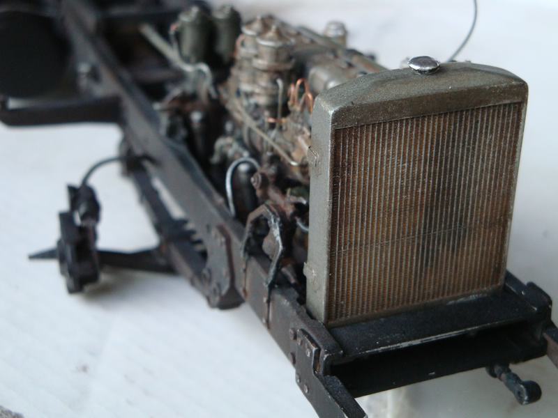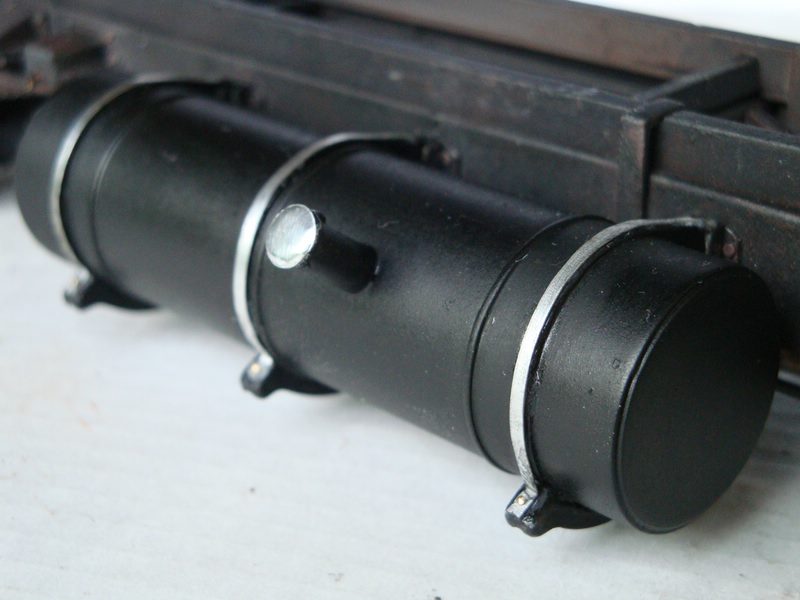 Die Tank- Befestigungsbänder sind aus einem Teelichtblech mit einem Skalpell geschnitten, der Tankdeckel ist aus dem gleichen Material mittels Stanzzange schön rund ausgetrennt und in Form gebracht.
