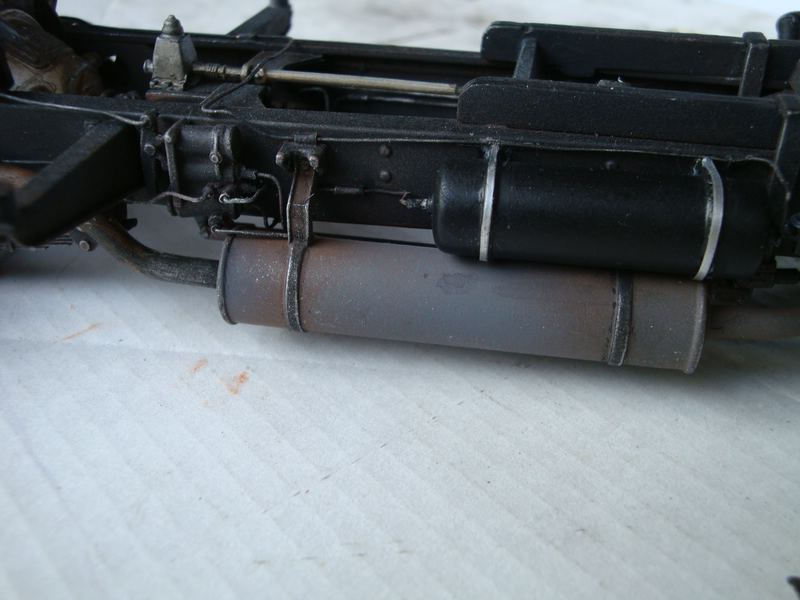 Auspuff, Drucklufttanks und Leitungen auf der linken Seite