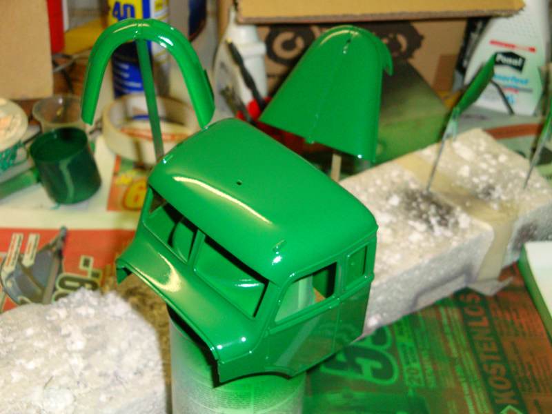 Der Krupp macht Fortschritte, manchmal gibt’s auch Rückschläge. Die Lackierung und anschließende Befestigung des Tanks hat mir einiges Kopfzerbrechen bereitet. Endlich mit den Halterungen verklebt, brach der Tank an den Klebestellen ab und der Lack war natürlich im Eimer