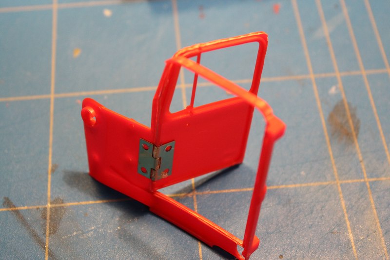 Habe Heute die Türen der Kabine mit dem Skalpell ausgeschnitten und mit einem Scharnier versehen, damit man sie öffnen kann.