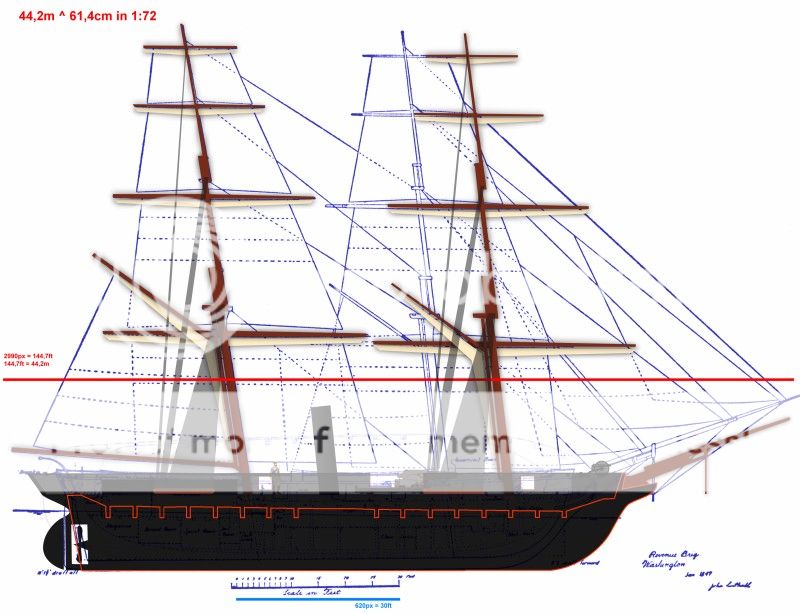 Mir persönlich gefallen die Rifles besser als die etwas arg "bullig" wirkenden schweren Geschütze (ab VIIIinch). Die 50pdr Rifles wurden bis in die frühen 1860er eingesetzt und späterhin von den Parrotts ersetzt, die eine höhere Reichweite erzielen konnten. Gerade bei leicht bewaffneten Schiffen waren einzelne Geschütze ab 32pdr auf Drehlafette stets beliebt, was dem Schiffstyp auch eher entspricht als das IX-Dahlgren...