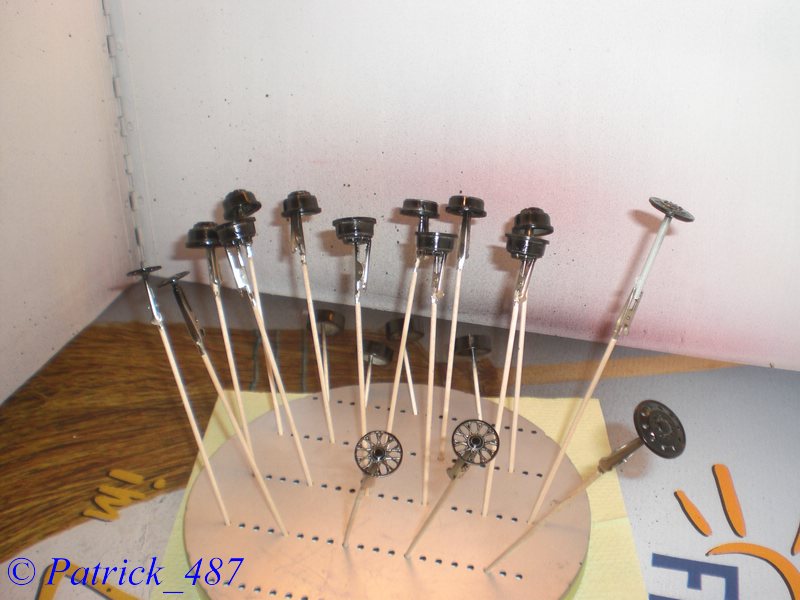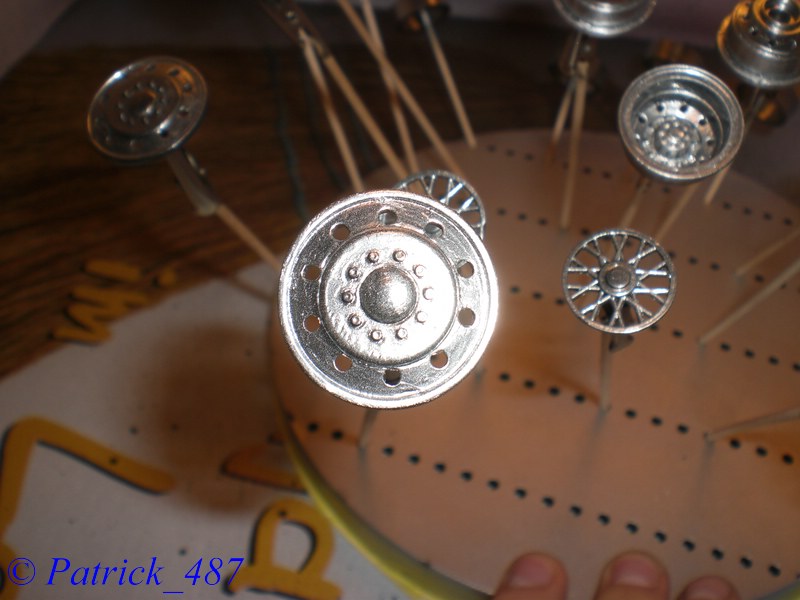 Weiter ging es jetzt mit den Felgen, bei diesen hatte ich mit Dowanol die Chromeschicht entfernt und kann jetzt diese mit Schwarz Glänzend von Alclad II (305) Lackieren. Hierfür habe ich meine Evolution mit der 0,2er Düse genommen
