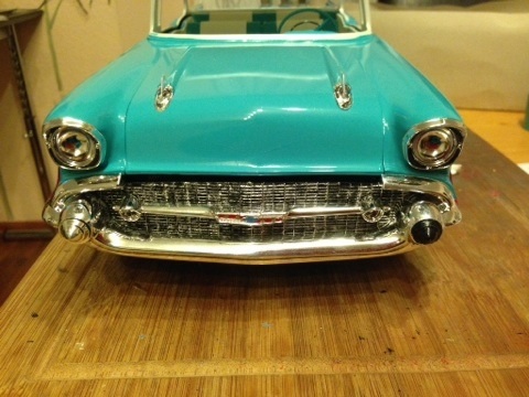 Hallo Achim,ich weiss nicht, ich habe den 57er Chevy auch 2mal in 1:12, aber ich meine, dass bei mir die gesamte Gemischaufbereitung anders aussieht...und entsprechend auch der Luftfilter...irgendwie bin ich jetzt verwirrt..Ansonsten: die Rippen hätte man alternativ auch aus PS-Profilen machen können, die hätte man dann schön schleifen und auslaufen lassen können wie auf Deinem Originalbild, aber Deine Lösung ist ebenfalls toll.Aber: ist der Lufi schon angeklebt? Der Rüssel schaut im Vergleich zum Vorbildfoto zur falschen Seite.Weiter so! und was ein Wahnsinnstempo!! LG,Matthias