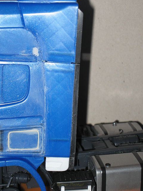 Ich habe heute noch ein Update für euch nachdem mich Chris angespornt hat die Stoßstange zu erhöhen habe ich es gemacht, Also einen Streifen PS auf 1,3x1mm geschnitten und nach der Kontur der Stoßstange Stück für Stück angeklebt. Soweit so gut jetzt muss ich nur noch alles Spachteln und schleifen.
