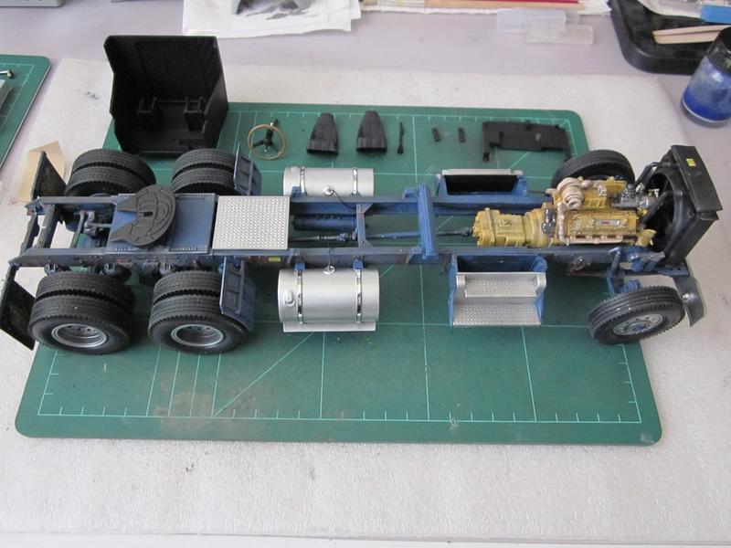 Dem Fahrer habe ich aber noch ein paar Hochglanzmagazine für 'langweilige' Stunden gegönnt. :D Die Kabine zusammen gesetzt und gleich ein wenig verschmutzt.