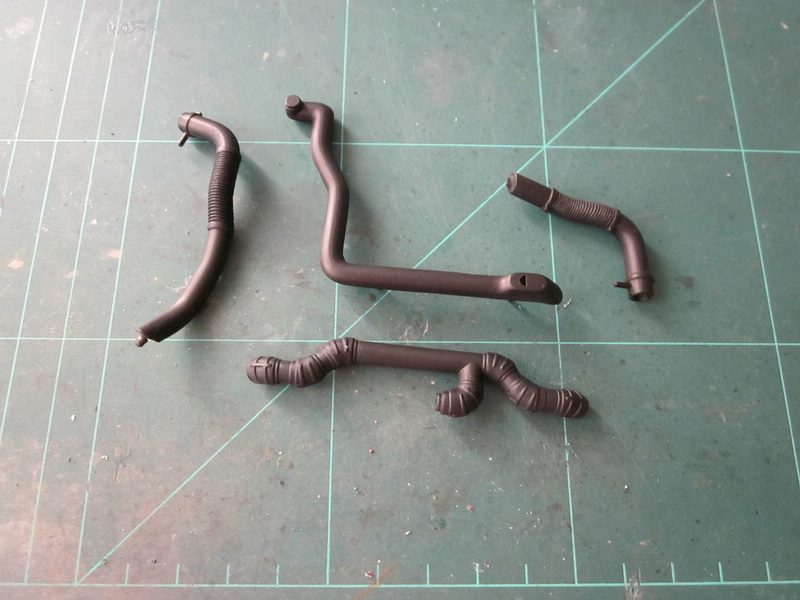 Und wieder ist nur wenig passiert. Ein wenig Verschmutzung an Tanks und Rädern und zwei Kühlerschläuche aus Schrumpf-Schlauch.