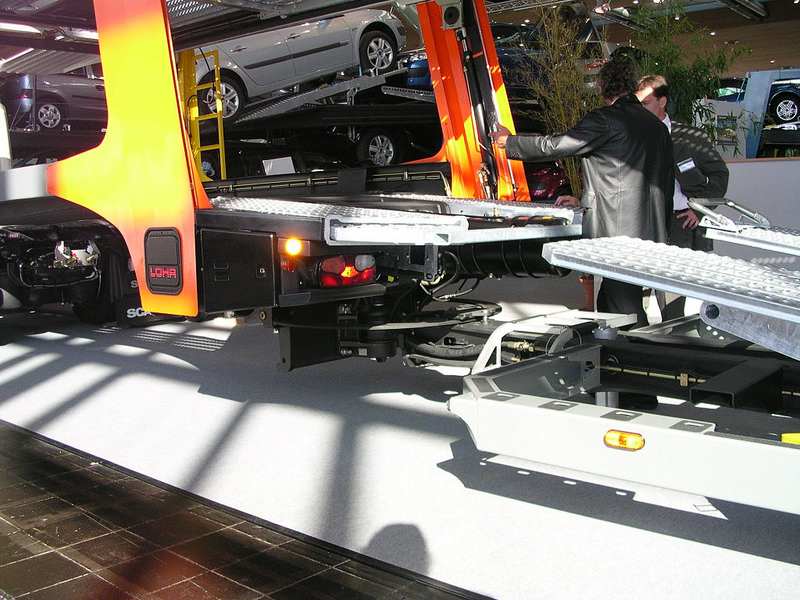 Das ist wegen dem Eurolohr-Aufbau, da wird der vordere Aufbau ja auf der Zugmaschine verankert und der Auflieger benötigt deshalb die am Heck liegende Platte. Ich habe leider auf die schnelle kein Bild gefunden wo man das System gut erkennen kann, am besten sieht man das eh am besten wenn man sich so einen Autotransporter selbst anschaut.