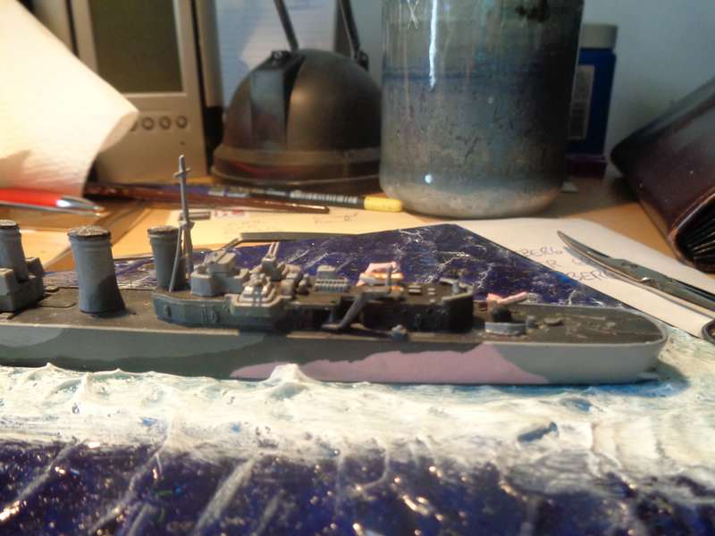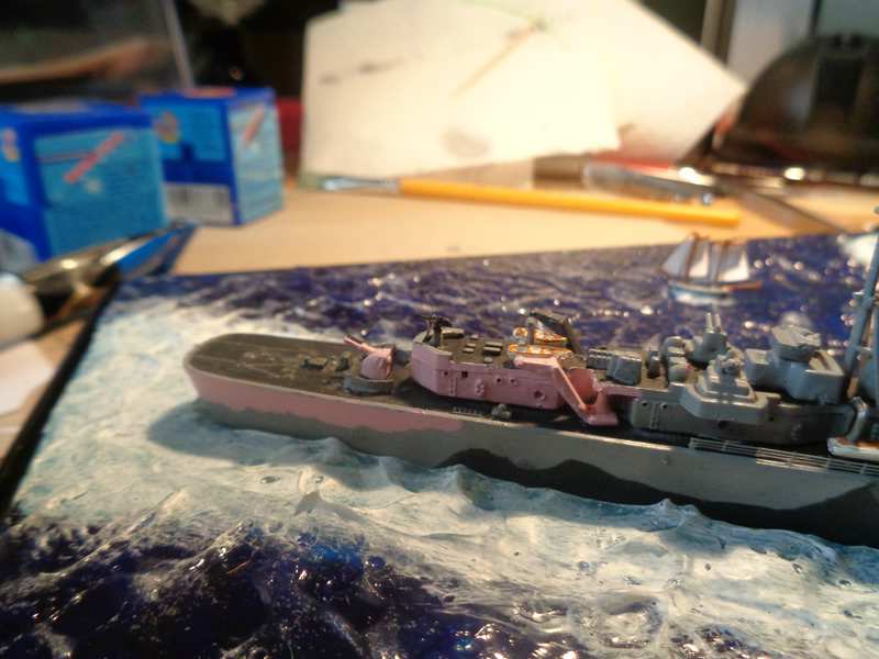 Was ich leider nicht geschafft habe ist einen Wasserbombenwerfer zu bauen. Ich habe lange im Internet gesucht ob es einen solchen zu kaufen gibt leider bin ich jedoch nicht fündig geworden. Somit muss die Ariadne ohne Werfer auskommen. Zu guter letzt wollte ich auch noch 2 Spitfires anbringen welche ich dann aber auch weggelassen habe da das Diorama sonst zu überladen gewirkt hätte.