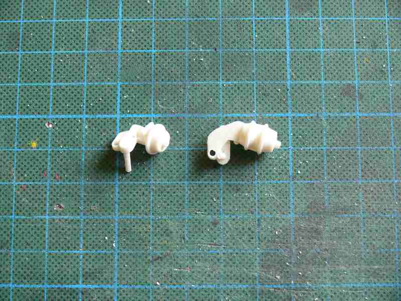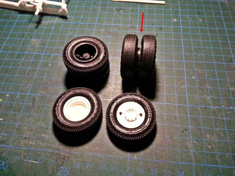 Weiter geht es nun, mit dem Zusammenbau, der Letzten, von den beiden Hinterachsen, damit die nun aber so halbwegs zusammen passt, habe ich die beiden Haltenippel entfernt (gelbe Pfeile), ohne diese Nippel, konnte die Achse fast ohne Versatz zusammen geklebt werden.